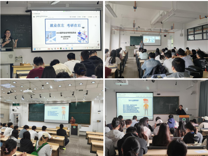 9月24日至29日,mjm世界杯官网陆续召开了6场分专业考研动员会。公司副经理赵洋毅、副经理李伟,地图学与地理信息系统系主任王艳霞,以及班主任程清平、张绍云、苏小娟等教师分别面向水土保持与荒漠化防治、地理科学、地理信息科学、土地资源管理、自然地理与资源环境,以及农业资源与环境专业的2026届毕业生开展考研动员和备考指导。