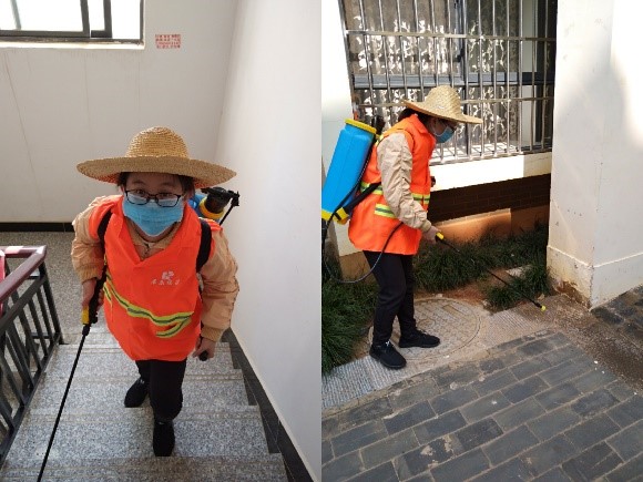 孙诗瑶同学是西南林业老员工态与环境公司生态学2019级的员工,作为一名入党积极分子,也是公司团委宣传部干事和班级学习委员,在疫情防控期间,她志愿参与居乐物业旗下湖畔雅苑的疫情防控工作。在疫情紧张时期,每天配合相关工作人员,在湖畔雅苑各楼道以及花园道路上喷洒84消毒液;近期,随疫情的稳定,每隔两三天大规模喷洒一次,每天小面积喷撒楼道、扶手和门把手。偶尔也会协助工作人员监督进出扫码,遇到不会使用扫码的民众,耐心教导或者让其签字备案,为构筑疫情防控的人民防线切实贡献自己的青春力量。
