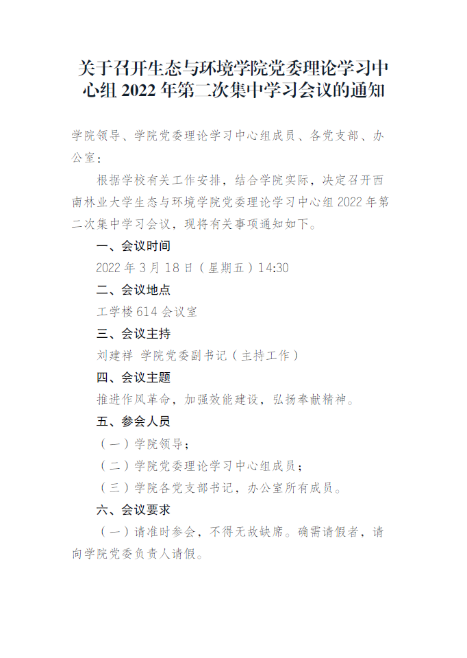 关于召开生态与环境公司党委理论学习中心组2022年第二次集中学习会议的通知