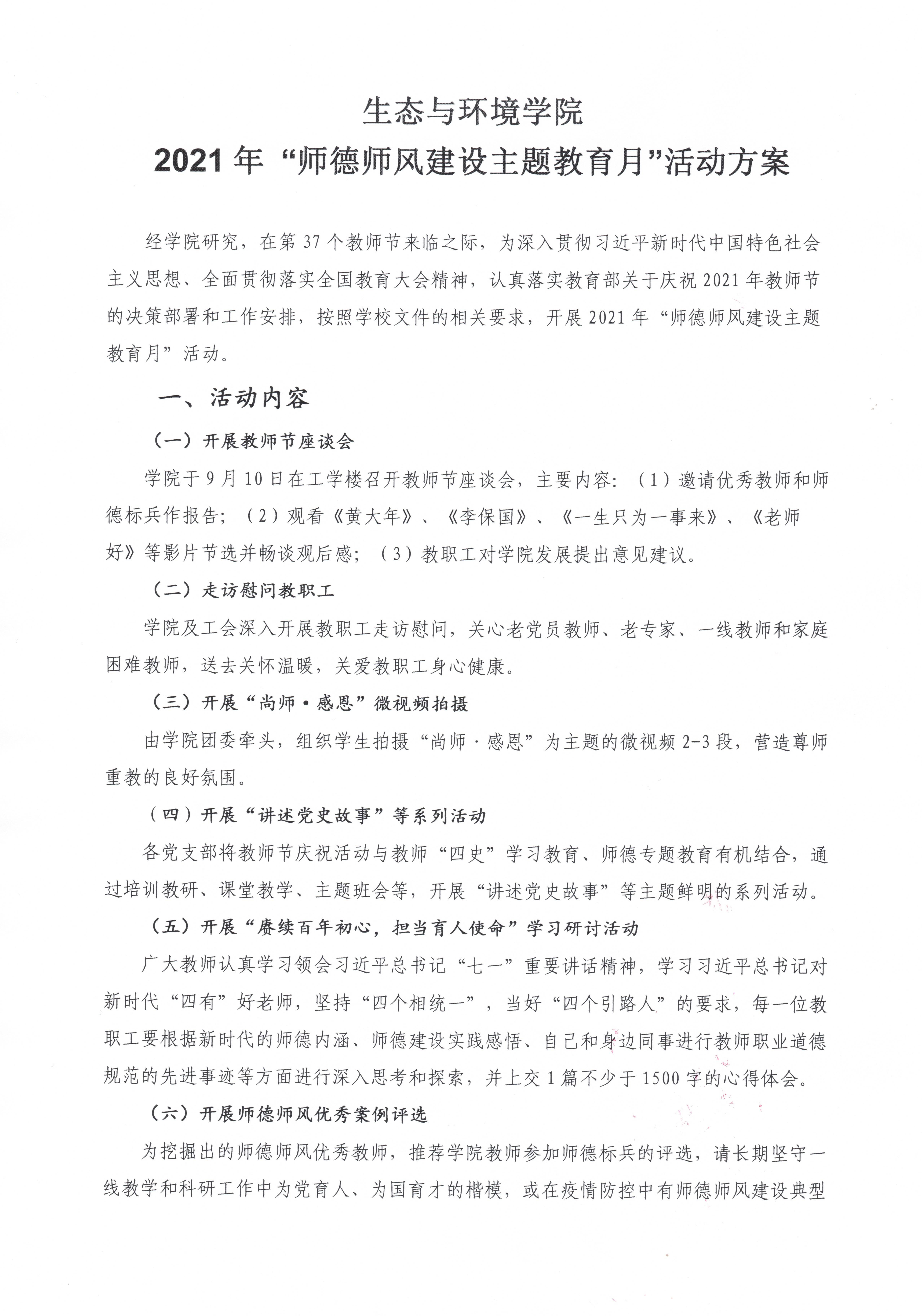 生态与环境公司2021年 “师德师风建设主题教育月”活动方案