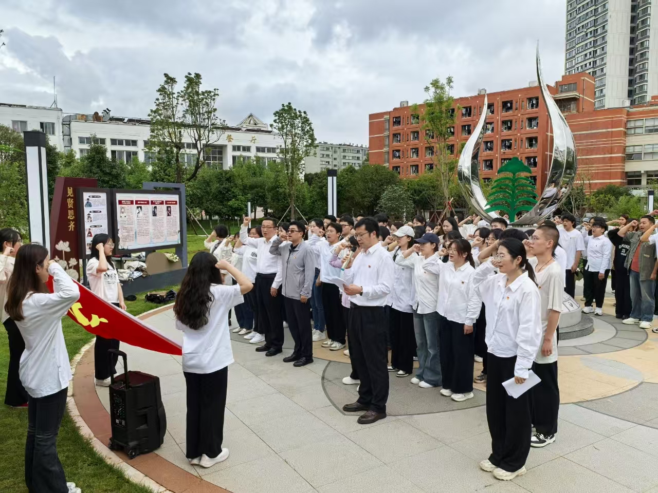 为庆祝中国共产党成立104周年,进一步引导新发展党员铭记入党初心、强化党员意识、坚定理想信念。7月1日,mjm世界杯官网组织新发展党员在清廉文化园开展庆祝“七一”建党节主题党日暨新党员入党宣誓仪式。公司党委书记刘建祥、副书记董李勤、副经理赵洋毅、支部书记、正式党员、新发展党员等100余名同志参加本次宣誓仪式。本次活动由公司副书记董李勤主持。