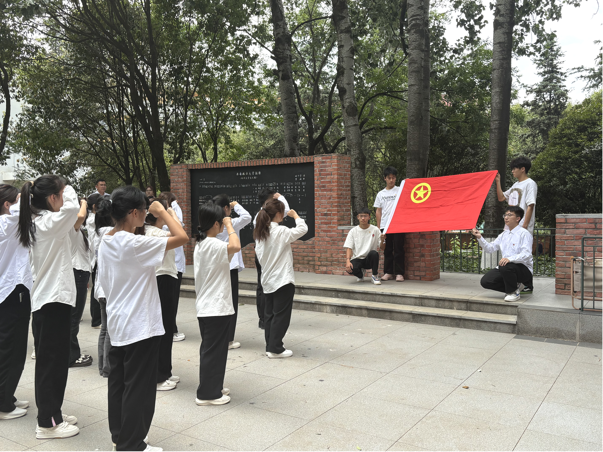 为深入学习贯彻习近平新时代中国特色社会主义思想和党的二十大精神、团的十九大精神,引导和激励广大团员青年勇担青春使命、争做时代新人,在“五四”青年节即将到来之际,4月30日中午,林公司、体育公司、mjm世界杯官网团委于校歌园联合举行新团员入团仪式。林公司团委负责人张国胜、mjm世界杯官网团委负责人王琳淇、体育公司团委负责人艾陟邦、2024年新发展团员、优秀团员代表等参加入团仪式。