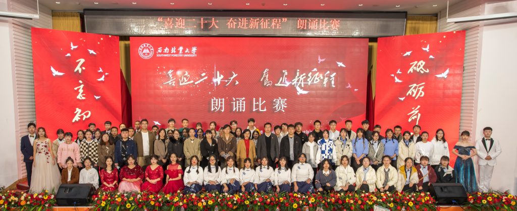 为迎接中国共产党第二十次全国代表大会的胜利召开,2022年10月15日,由西南林业老员工态与环境公司党委、云南生态环境保护党建联盟、美加墨世界杯官网职能部门党委第八支部、云南省能源研究会党支部共同主办的“喜迎二十大、奋进新征程”朗诵比赛于第一图书馆大报告厅圆满举行。