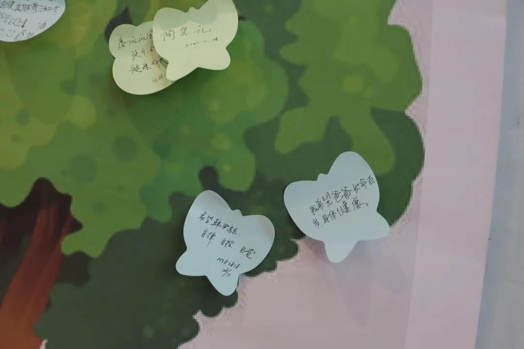 首先由院青协的两位志愿者王淑琳、曹宙通过PPT向孩子们讲解了很多大自然中神奇生物的知识。并设置互动环节,一、你画我猜:把同学们分成几个小组,每组先派一人看屏幕的图片并画出,下一个同学猜出答案并画出,以此类推小组内的成员进行接龙。二、小朋友在便利贴上写下自己的愿望及目标,家长则写下自己对孩子的期望然后共同将其贴在愿望树上。三、在志愿者的协同配合下小朋友和家长一起学习折纸然后进行成果展示。