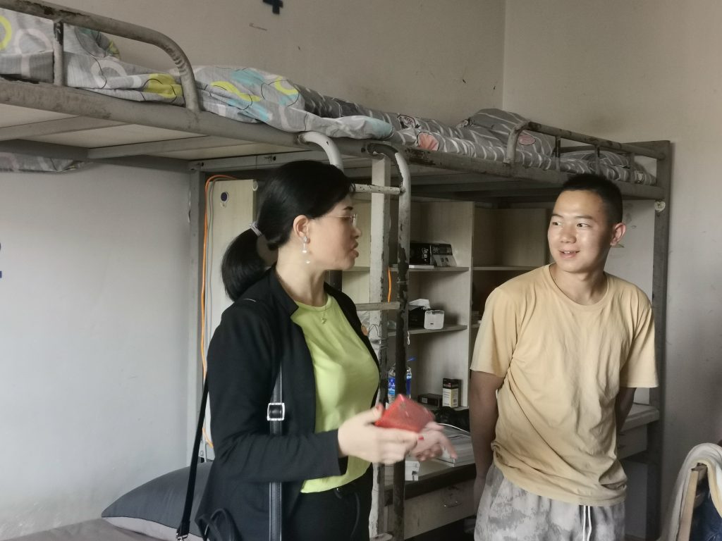 在2020级专升本新生入学之际,为进一步了解公司专升本新生入住情况以及适应公司状态。9月9日晚,生态与环境公司党委副书记邓志华带领公司教师走访员工宿舍,与公司员工进行亲密交谈。