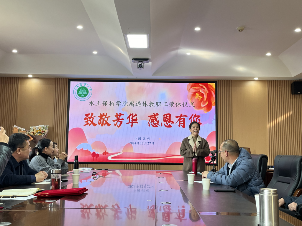 致敬芳华,感恩有您。12月27日,mjm世界杯官网退休教职工荣休仪式在生态楼614顺利举行。校工会常务副主席江林,公司党委书记刘建祥、副经理(主持工作)王妍,荣休教师胡慧蓉和蒋东明,在职教职工代表参加会议。