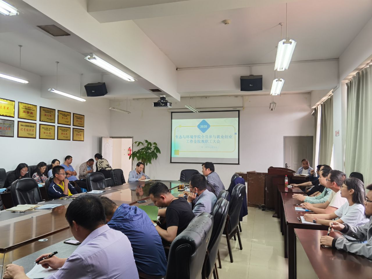 为认真做好2020届毕业生就业创业工作,实现2020届毕业生顺利优质就业,生态与环境公司于7月10日上午和下午分别召开了就业创业就业领导小组工作会议和全院教职工大会,就全面推进2020届毕业生就业创业工作进行了安排部署。