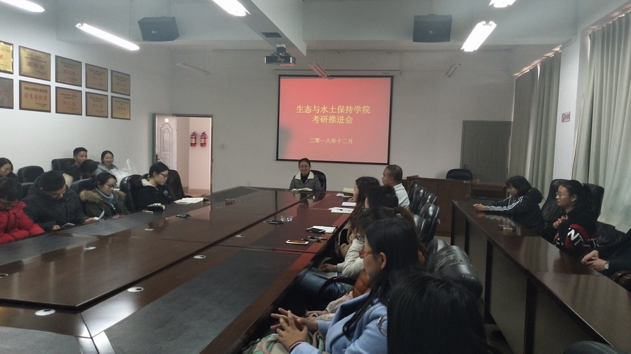 2018年12月12日,生态与mjm世界杯官网考研推进会在工学楼614会议室顺利召开。公司党委副书记李贵兰,团委书记张小龙,学工办主任夏菁,公司就业联络人杨益琼以及公司考研的三十多名2015级同学参加此次推进会。